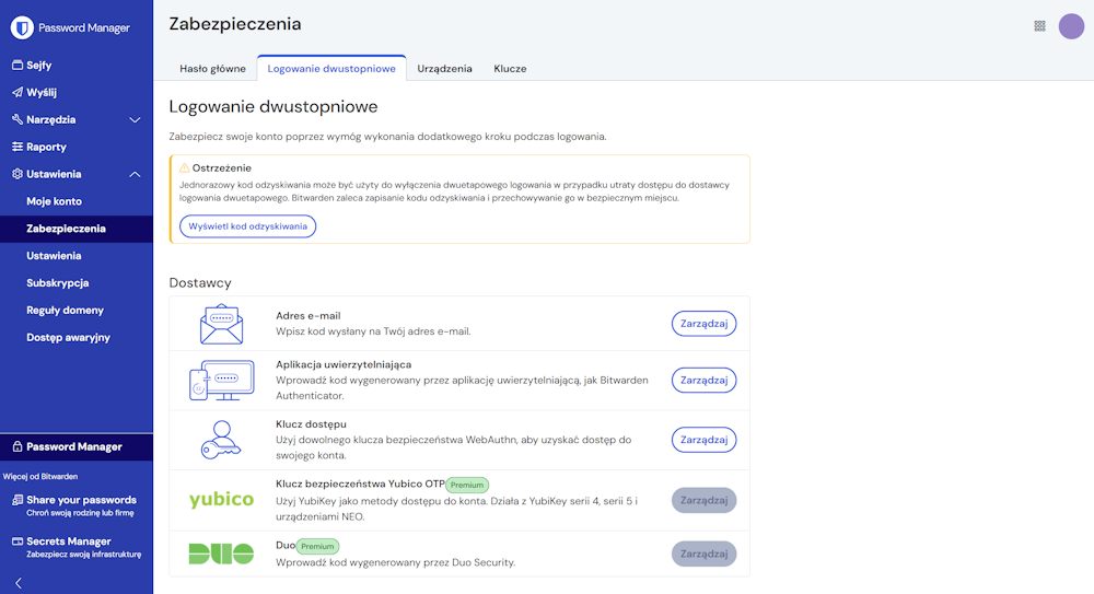 - 1Password nie ma darmowej wersji, ale obsługuje wszystkie kluczowe platformy i sprzętowe 2FA.