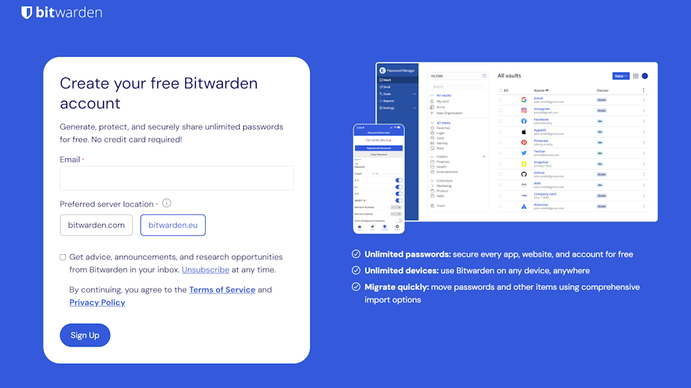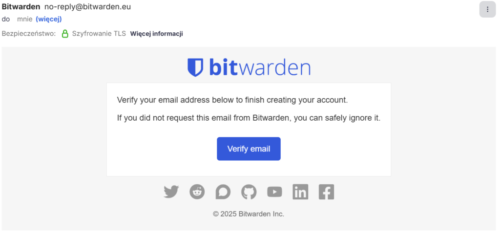 1. Wejdź na stronę bitwarden.com i załóż konto, podając swój adres e-mail.