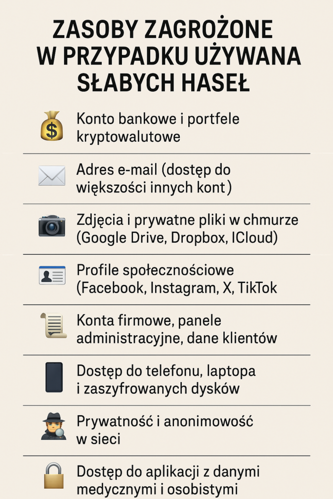 W praktyce jednak wiele osób korzysta z jednego lub kilku haseł „do wszystkiego”, narażając się na efekt domina: jedno włamanie może otworzyć drzwi do całego cyfrowego życia.